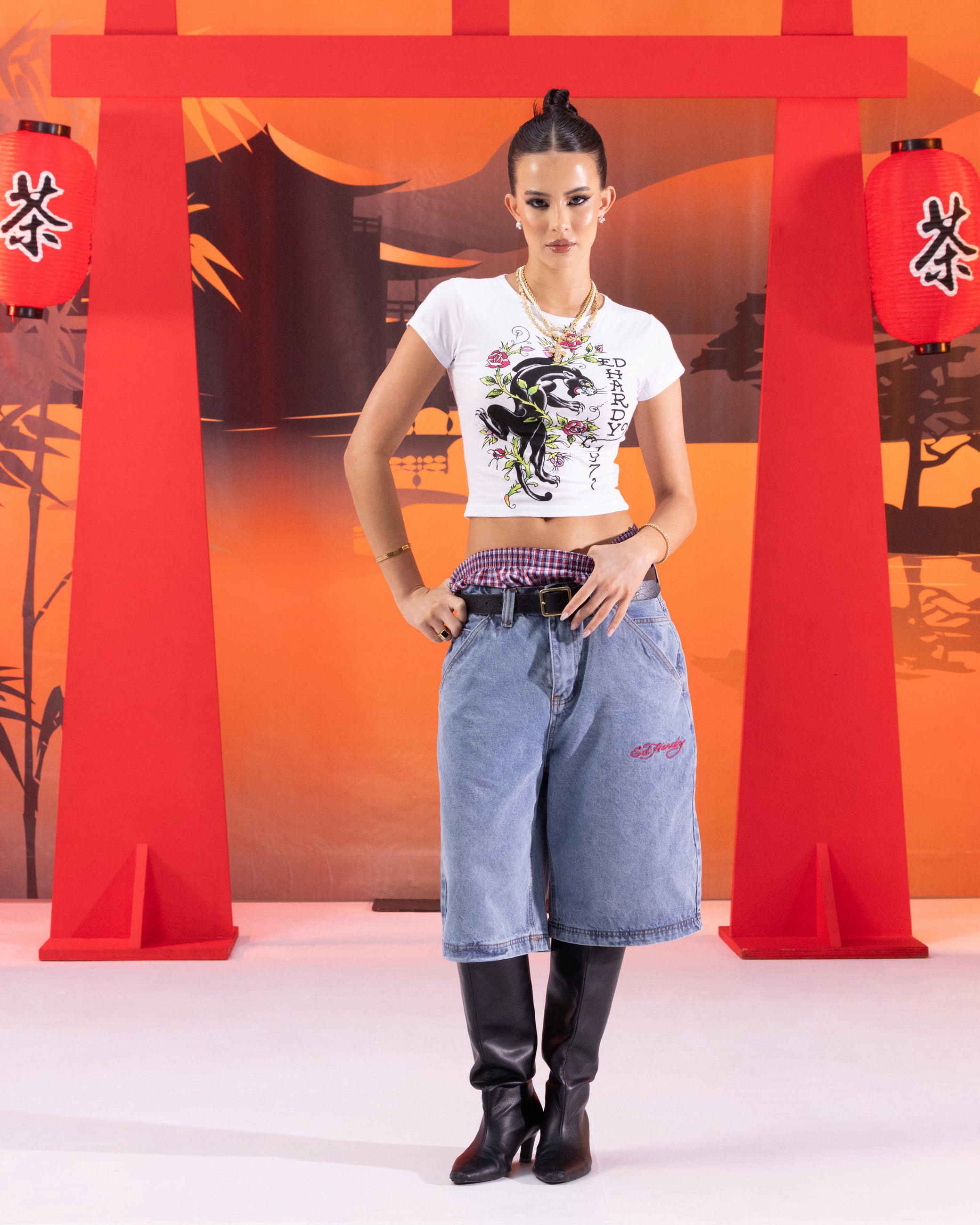 Ed Hardy Geisha Jorts Light Wash Blue