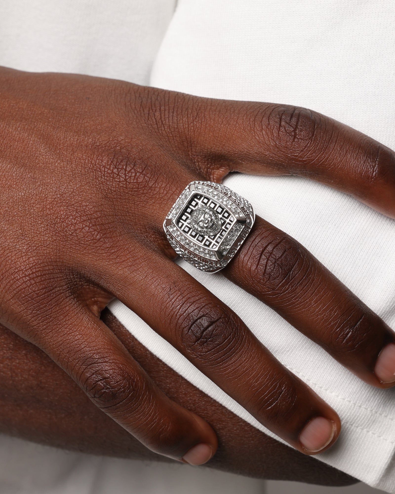 Guess Mainline 14mm Lion Pave Signet Ring Silver
