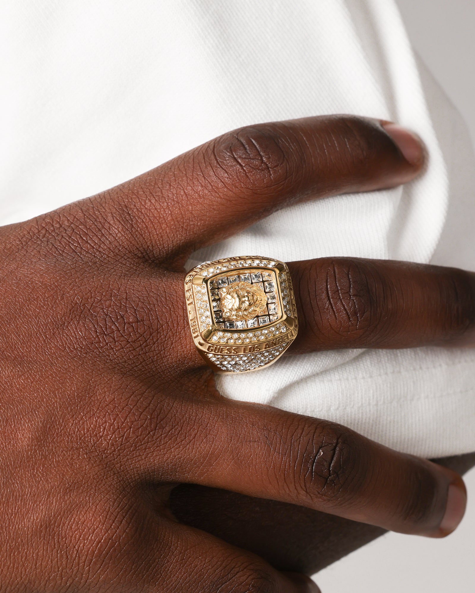 Guess Mainline 14mm Lion Pave Signet Ring Gold