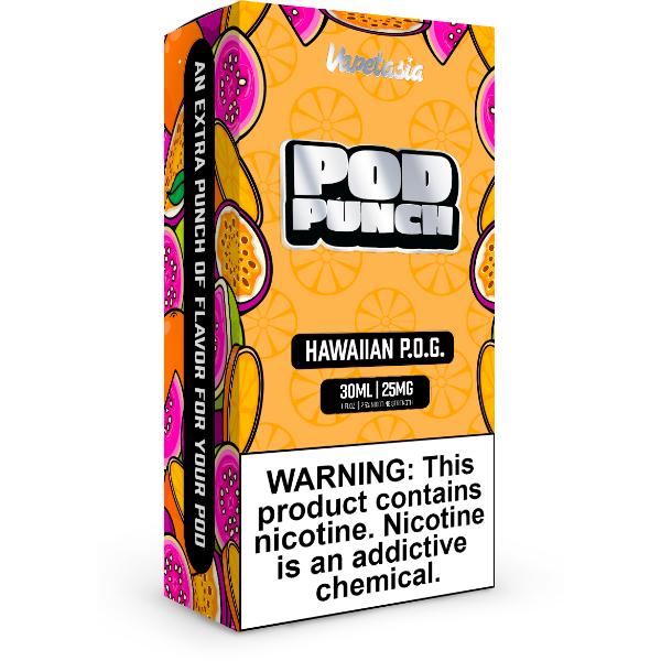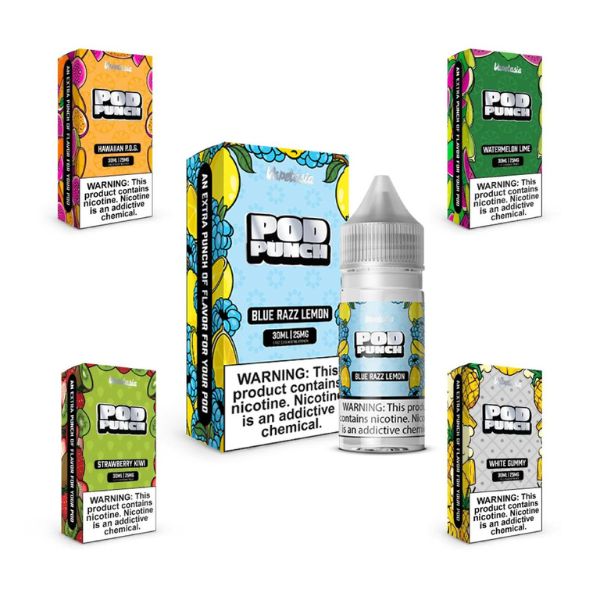 Vapetasia unveils its latest addition to the Salt Series: Pod Punch. Distinguished by its intensified flavor profile, Pod Punch offers an extra kick designed specifically for pod systems. With an array of tantalizing options, these flavors promise a sensory journey like no other. Indulge in the refreshing Blue Razz Lemon, the tropical allure of Hawaiian Pog, or the creamy fusion of Strawberry Banana. Whether it's the icy zest of Strawberry Kiwi Ice or the sweetness of White Gummy, each variant promises a delightful vaping experience. Available in 25mg and 50mg nicotine levels, Pod Punch comes in a convenient 30mL bottle size.